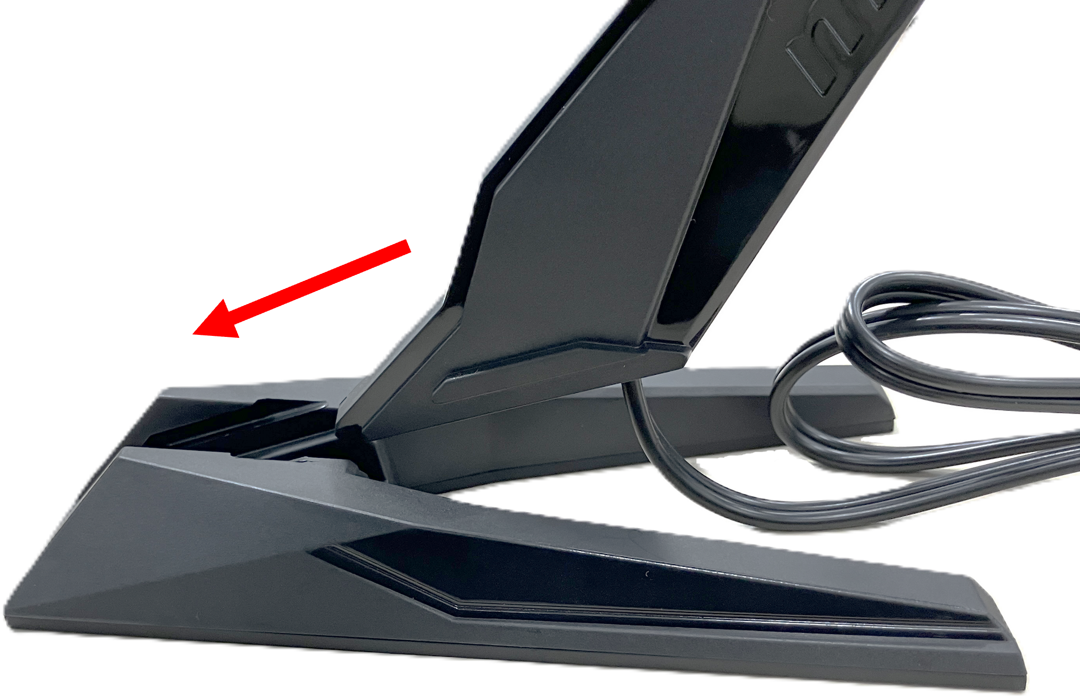 3. Wi-Fi アンテナケーブルを台座底面ケーブル止めの間に挿入します。