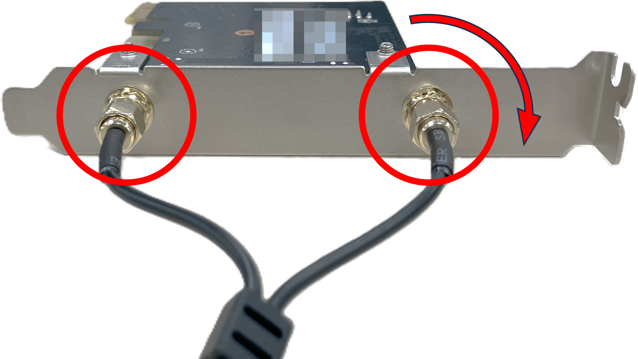4. Wi-Fi アンテナケーブルを PC 裏面 Wi-Fi カードのアンテナポートに取リ付けまます。