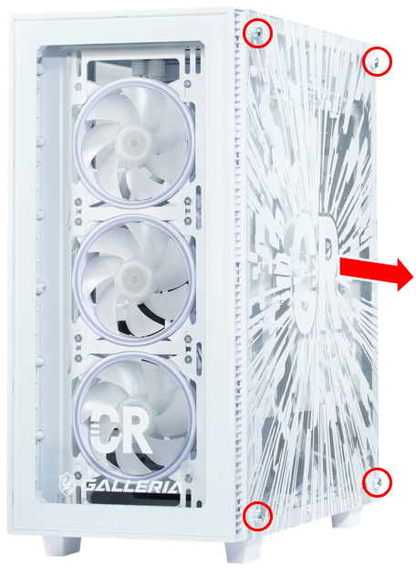 1. 左側面ガラスパネル右側面ガラスパネルを外します。