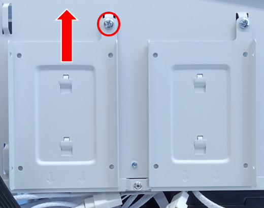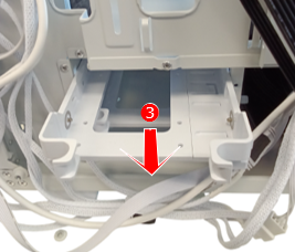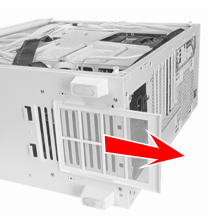 3. 右側面、2.5インチ ストレージマウンターを上矢印方向に上げ外します。