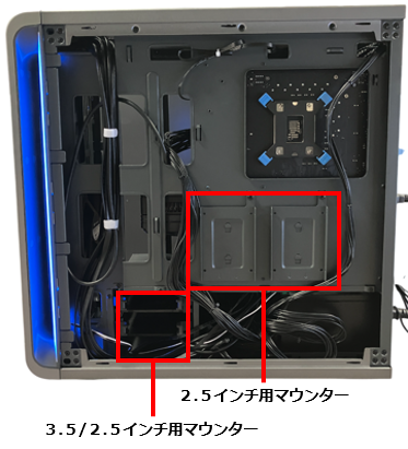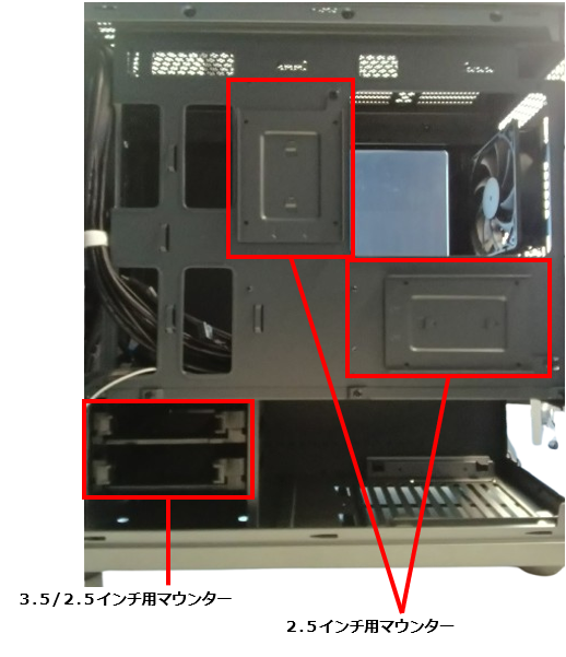 2.5インチはマウンター背面より 4 箇所ねじ止めします。