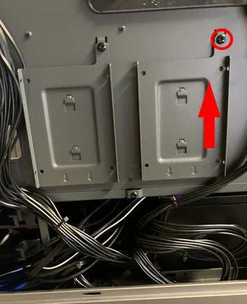 2. 右側面、2.5 インチ ストレージ マウンターの固定ネジを外します。