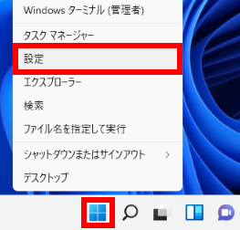 1. [ スタート ] を右クリック、 [ 設定 ] をクリックします。