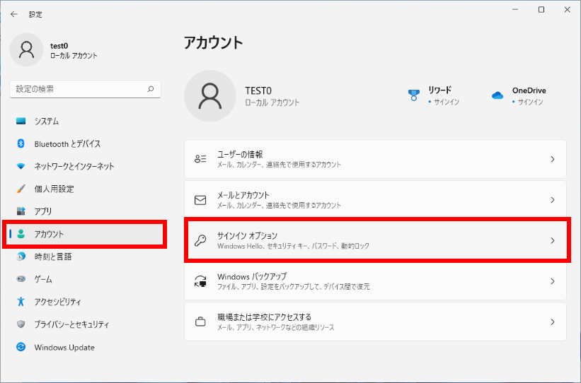 7. 「 アカウント > サインインオプション 」 画面に戻ります。