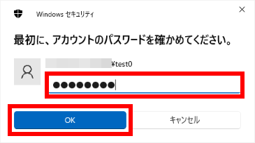 サインインしているユーザーアカウントの [ パスワード ] を入力し、[ OK ] をクリックします。