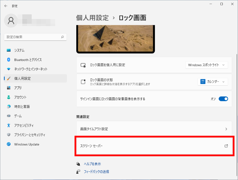 [ スクリーン セーバー ] をクリックします。
