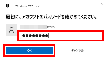 6. アカウントのパスワードを入力し、[ OK ] をクリックします。