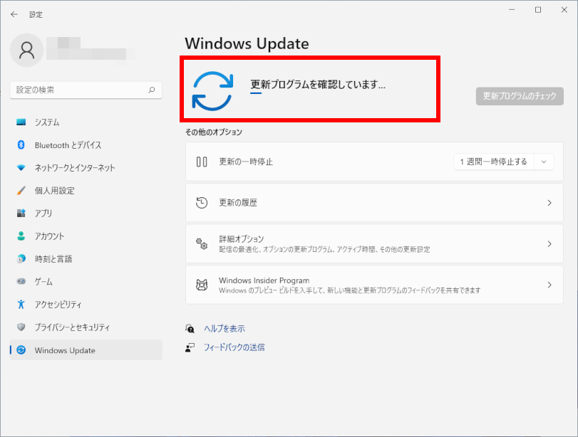「 更新プログラムを確認しています... 」 と表示され、更新プログラムのチェックが始まります。