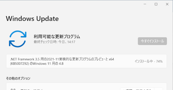更新プログラムが見つかった場合は、画面の指示に従いインストールします。