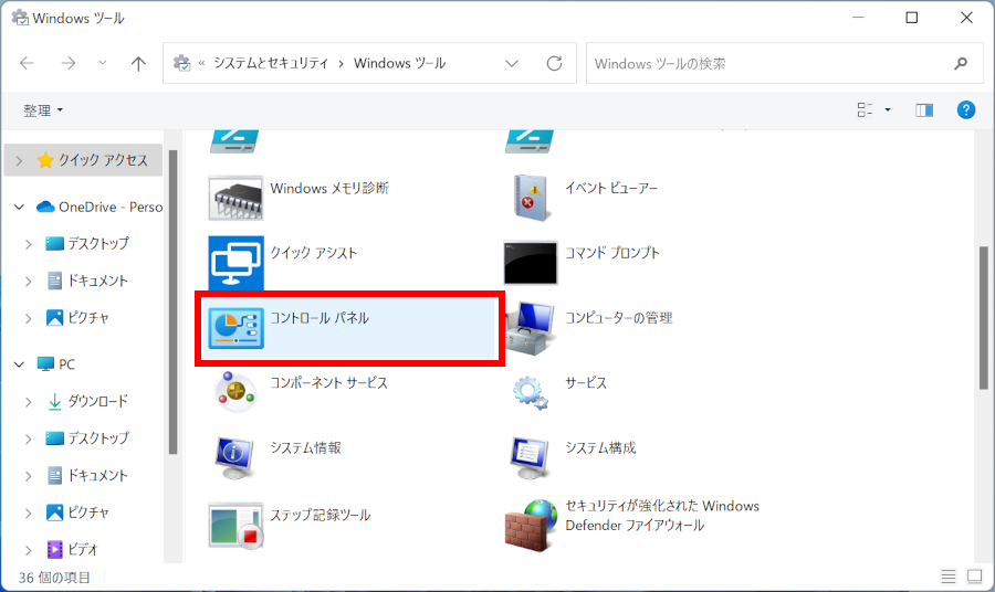 スクロールダウンし、[ コントロール パネル ] をダブルクリックします。