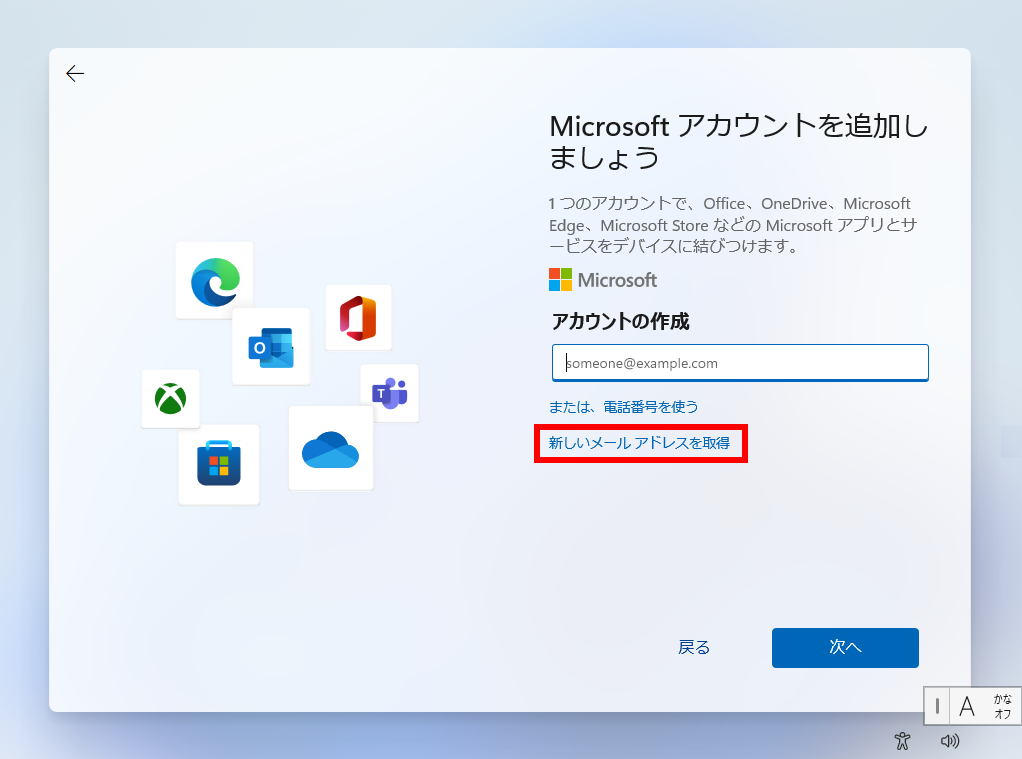22. 「 Microsoft アカウントを追加しましょう 」 画面が表示されます。