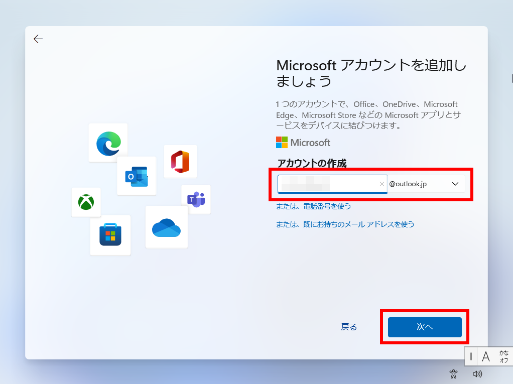 ※新規登録予定のアカウントを 「 アカウントを追加しましょう 」 画面の入力欄に入力すると 「 Microsoft アカウントが存在しません … 」 とエラーが表示されます。