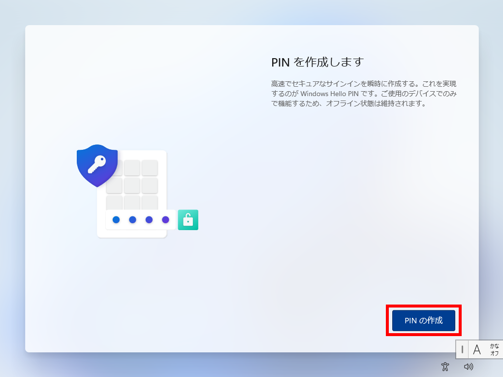 30. 「 PIN のセットアップ 」 画面が表示されます。