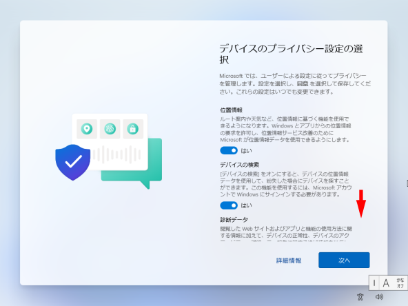 25. 「 デバイスのプライバシー設定の選択 」 画面が表示されます。