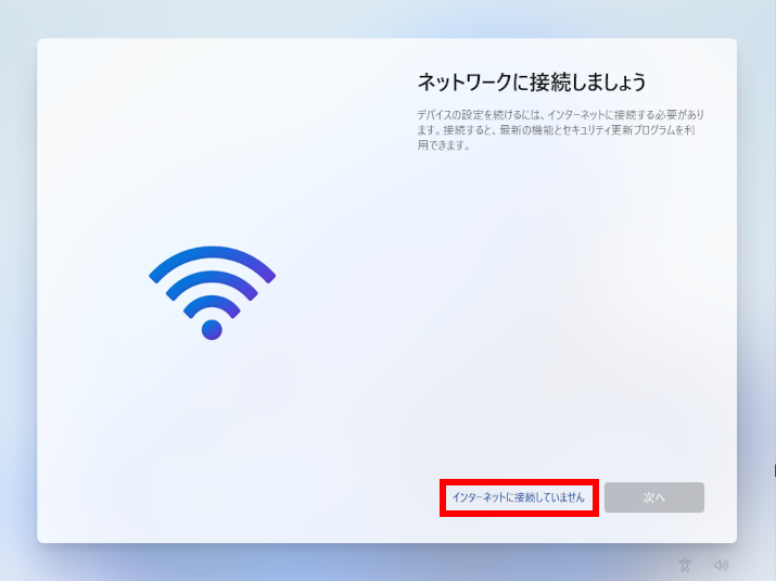 ネットワークに接続していませんので、 [ インターネットに接続していません ] をクリックします。