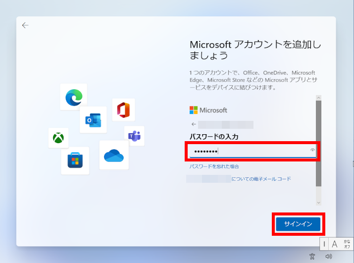 [ パスワード ] を入力し、 [ サインイン ] をクリックします。